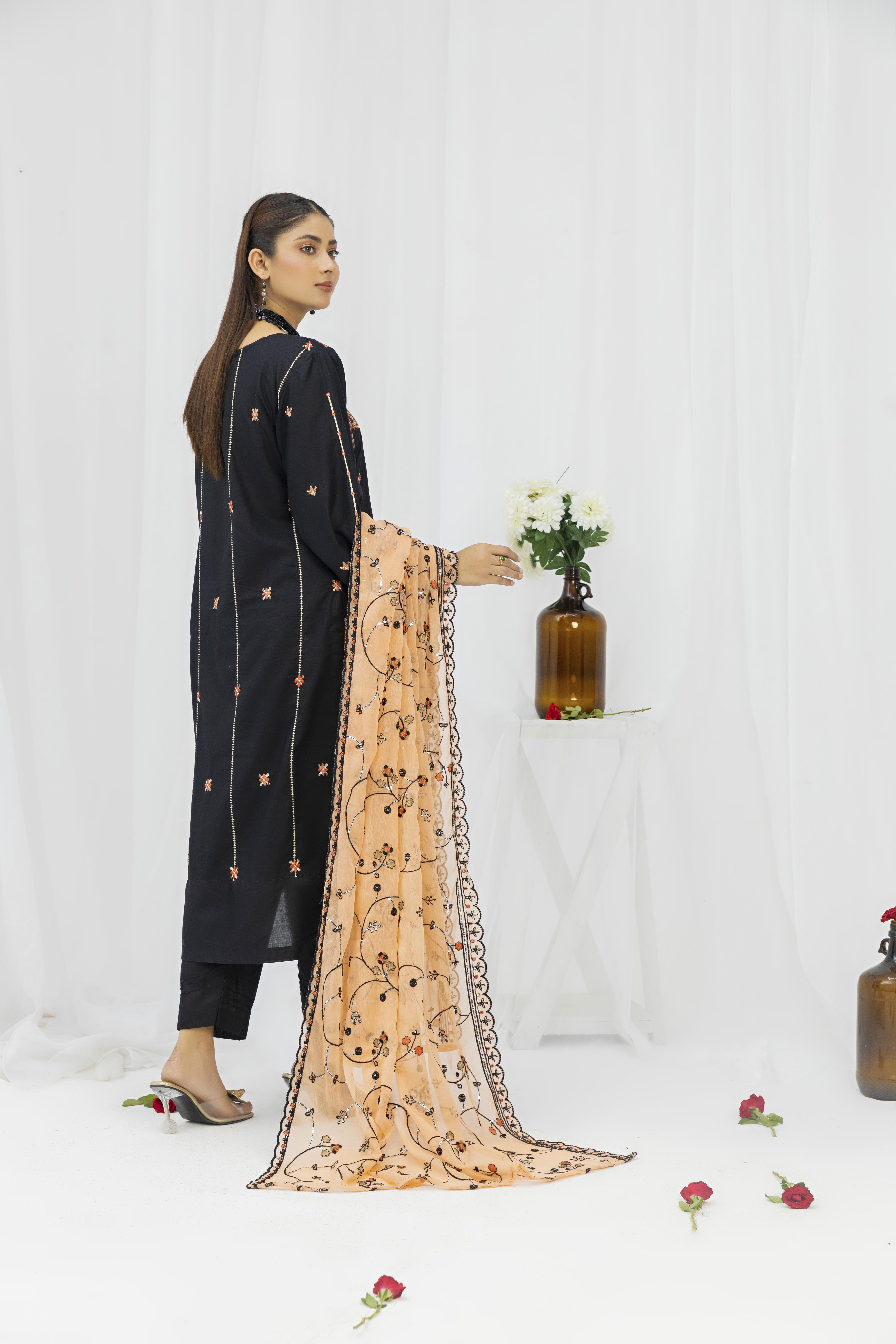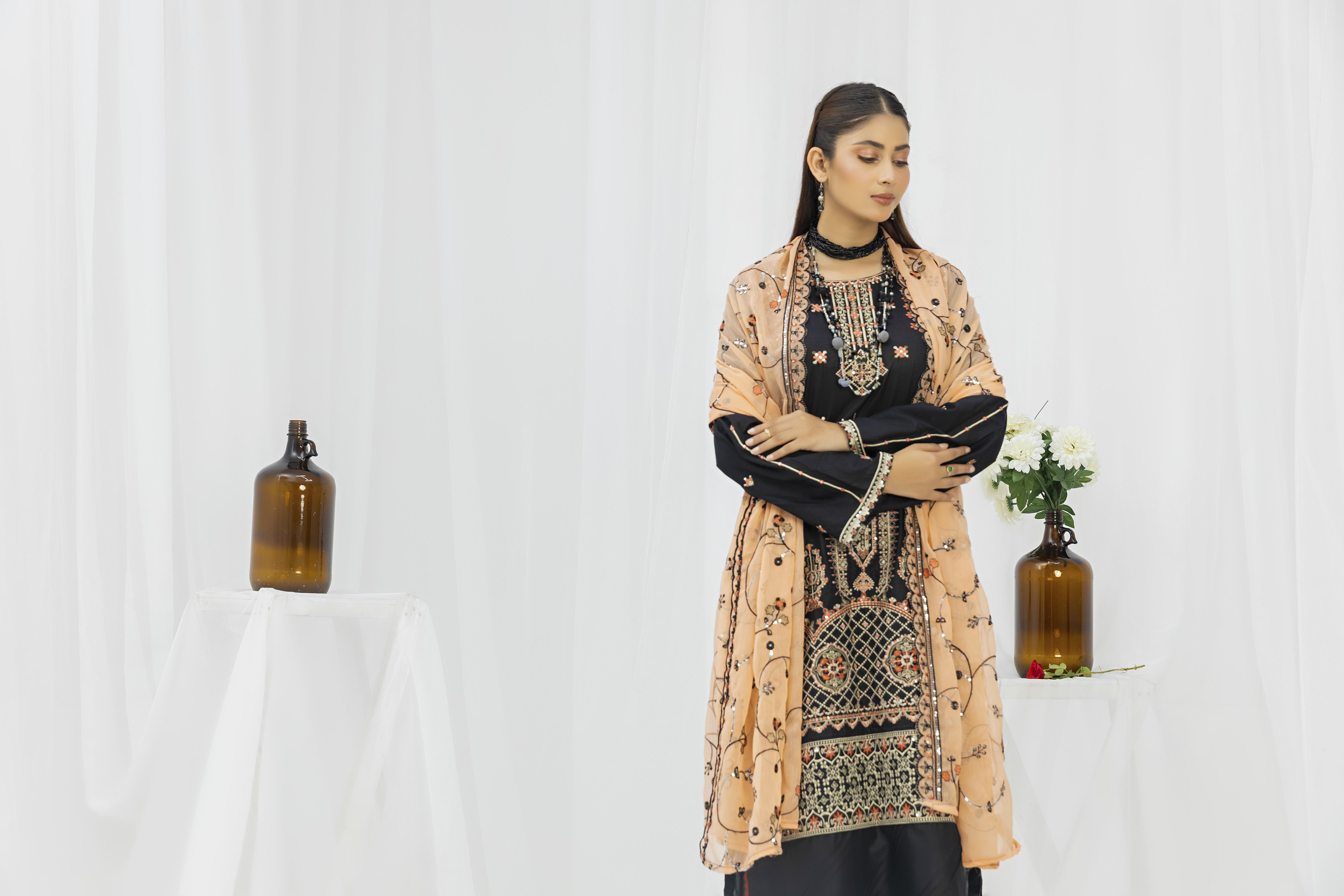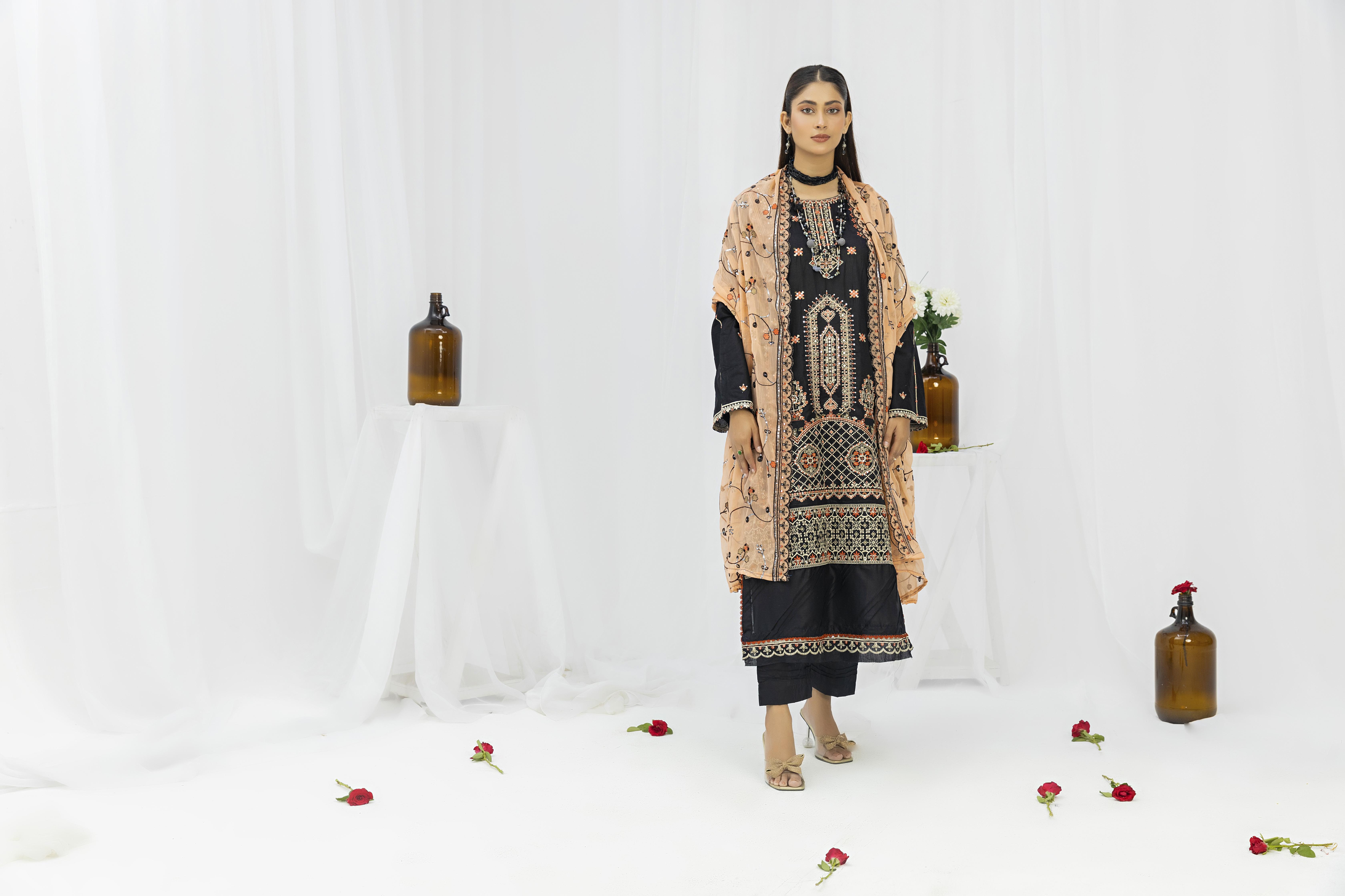 fancy embroidered unstitched cotton collection Muntaha Fabrics provides new unstitched embroidered suits and embroidered dresses in various colors. Shop online for different colors and more.